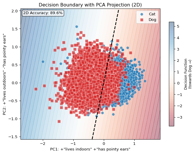 Below is a schematic of the basic idea of vector-semantic mapping using relative representations, applied to the binary classification task of cat and dog images based on the embeddings of a CLIP-like vision encoder.