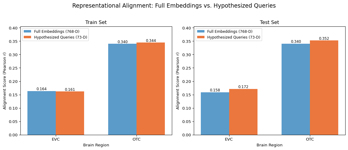 This is a form of hypothesis-driven alignment analysis. Rather than asking “how well does this model predict the brain?” we ask “which semantic concepts, expressible in language, mediate the correspondence between model and brain?”