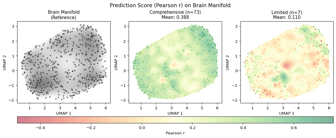 Many different models achieve comparable alignment: A striking finding here and in the broader literature is that qualitatively different models (even those trained on entirely different modalities of data) often achieve similar brain-predictivity scores. This parity – not visible when testing single models – motivates the multi-model, many-metric (but single pipeline!) approach demonstrated here.