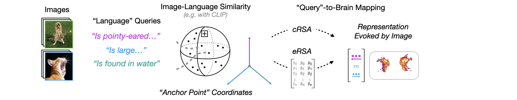 When we fit a standard encoding model, we learn weights over thousands of opaque features. We can measure alignment, but we cannot easily interpret why certain images are predicted well or poorly. Relative representations offer a path forward: by projecting both model features and brain activity into a shared space defined by interpretable language queries, we can ask which semantic dimensions are most important for predicting neural responses.