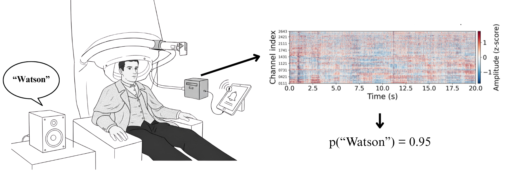 Full speech decoding from non-invasive brain signals remains an open challenge. However, keyword spotting—detecting specific words of interest—offers a more tractable goal that could still enable meaningful communication. Even detecting a single keyword reliably (a “1-bit channel”) could significantly improve quality of life for individuals with severe communication disabilities, allowing them to: